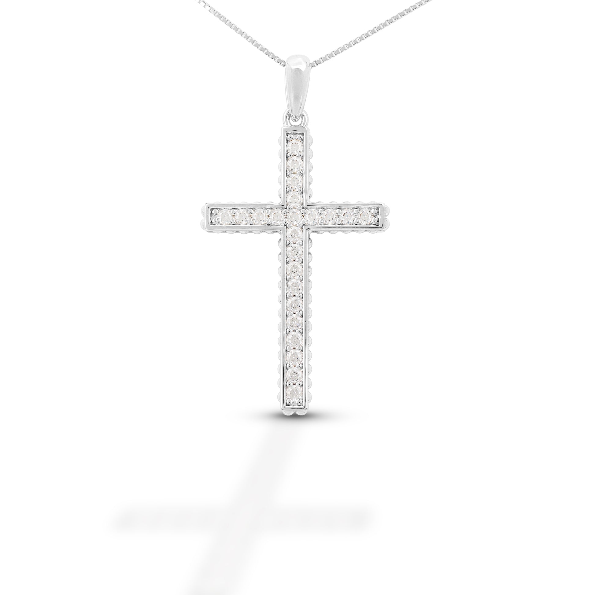 This sparkling cross pendant brings timeless elegance with a touch of refined western charm. Lined with brilliant stones that add radiant shine from every angle, it features a sleek, polished frame that enhances each shimmering detail. Lightweight yet eye-catching, it’s perfect for everyday wear or special occasions, offering a meaningful symbol of faith with a beautifully elevated look. Ideal as a personal keepsake or a thoughtful gift.