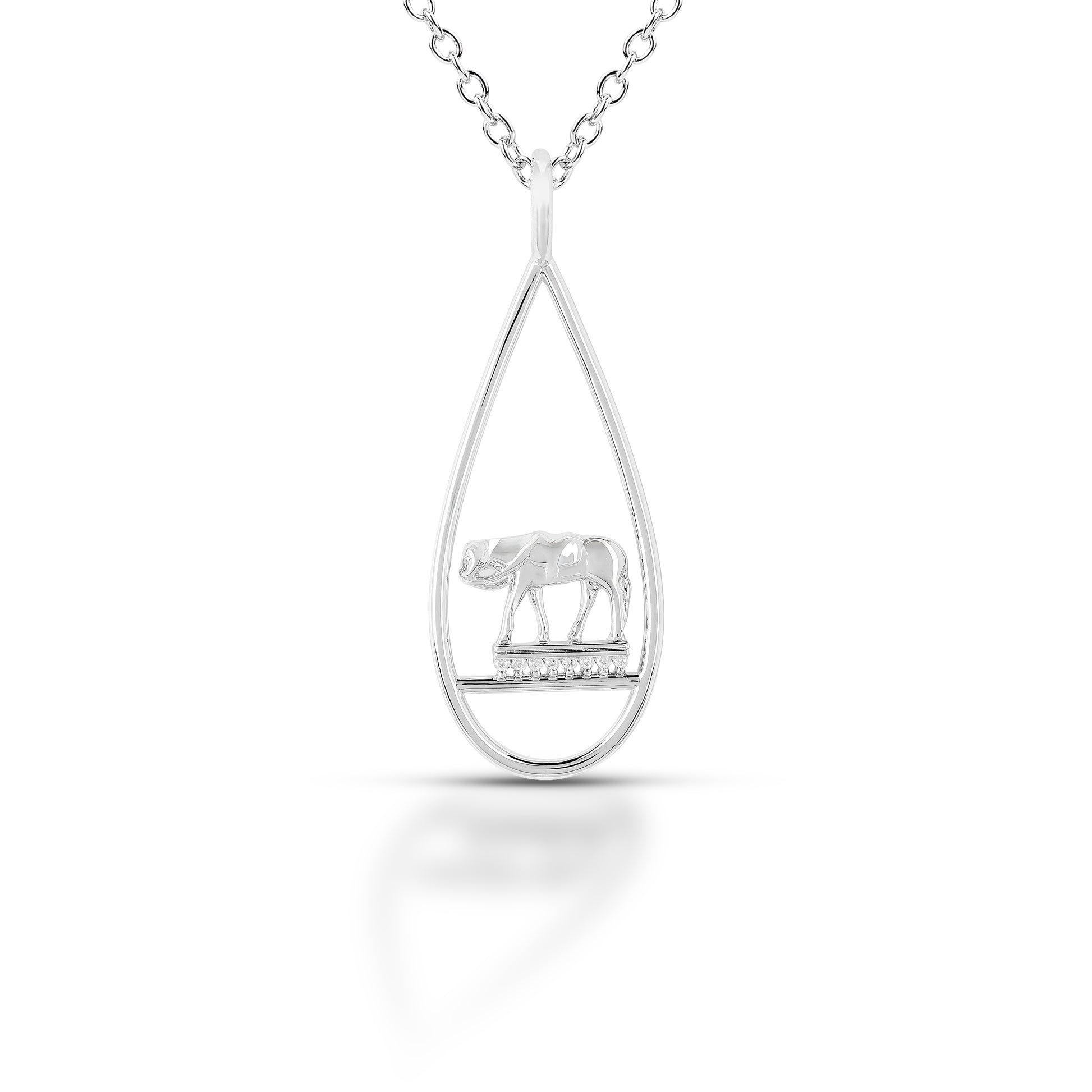 This elegant pendant necklace features a sculpted horse motif set within a sleek teardrop frame. Crafted from polished brass, the open design highlights clean lines and refined detailing, capturing the grace and strength of the horse in a modern, minimalist silhouette.