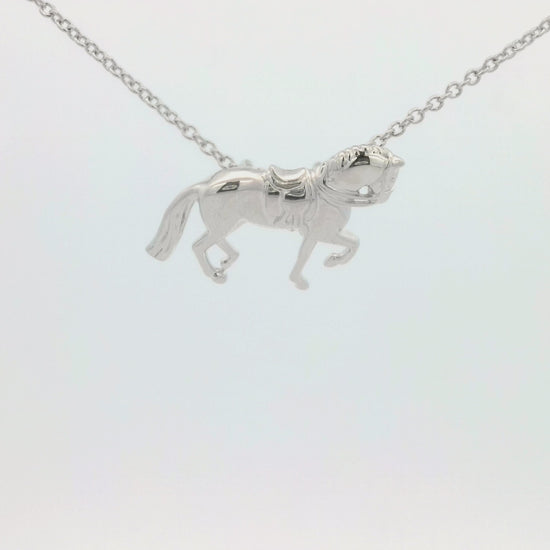 Celebrate the elegance and strength of the equestrian world with this stunning silver plated dressage horse necklace. Expertly crafted with intricate detailing, this pendant captures the graceful movement and refined beauty of a dressage horse in motion. The polished silver plated finish adds a sleek and timeless touch, making it the perfect accessory for horse lovers, riders, and equestrian enthusiasts. Suspended from a delicate yet durable chain, this necklace is a symbol of passion, dedication, and the timeless bond between horse and rider. Whether as a cherished keepsake or a thoughtful gift, this piece is sure to be treasured for years to come.