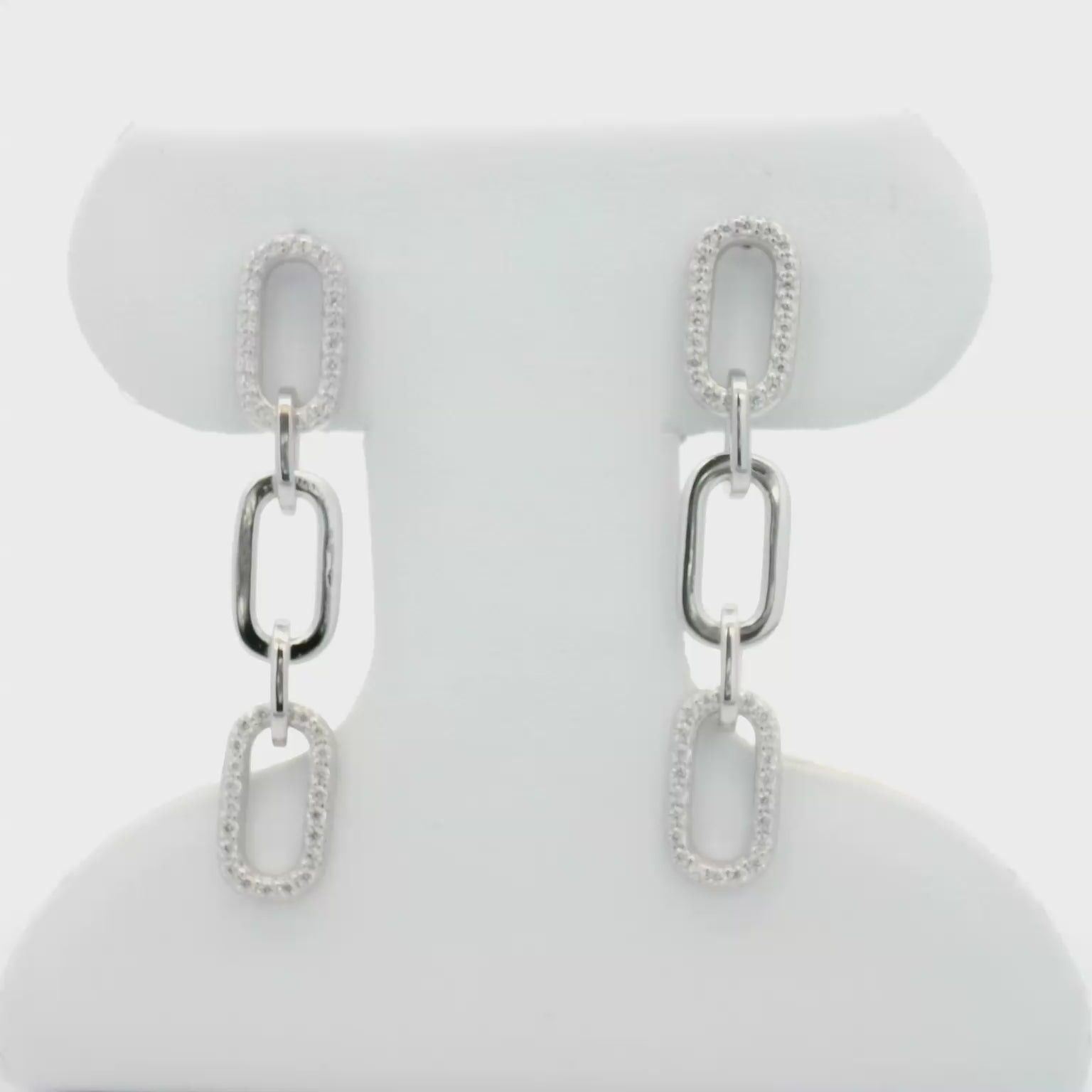 These simple yet stylish Kelly Herd 3 Link Paper Clip Earrings are a must have. The high polished sterling silver links make a dramatic statement when paired with the links set with clear cubic zirconia stones. These are perfect for everyday wear as well as a night out on the town.
