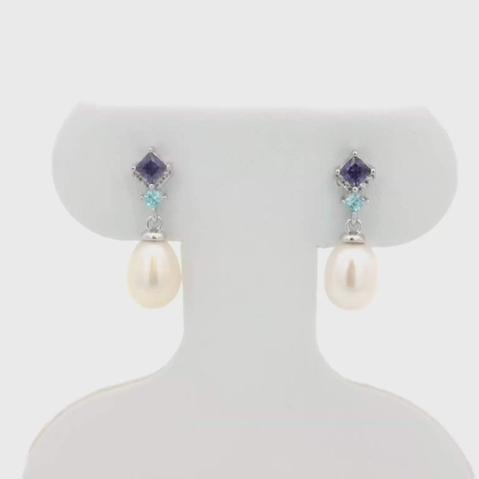 Kelly Herd Amethyst & Blue Topaz Tear Drop Pearl Earrings - Sterling Silver