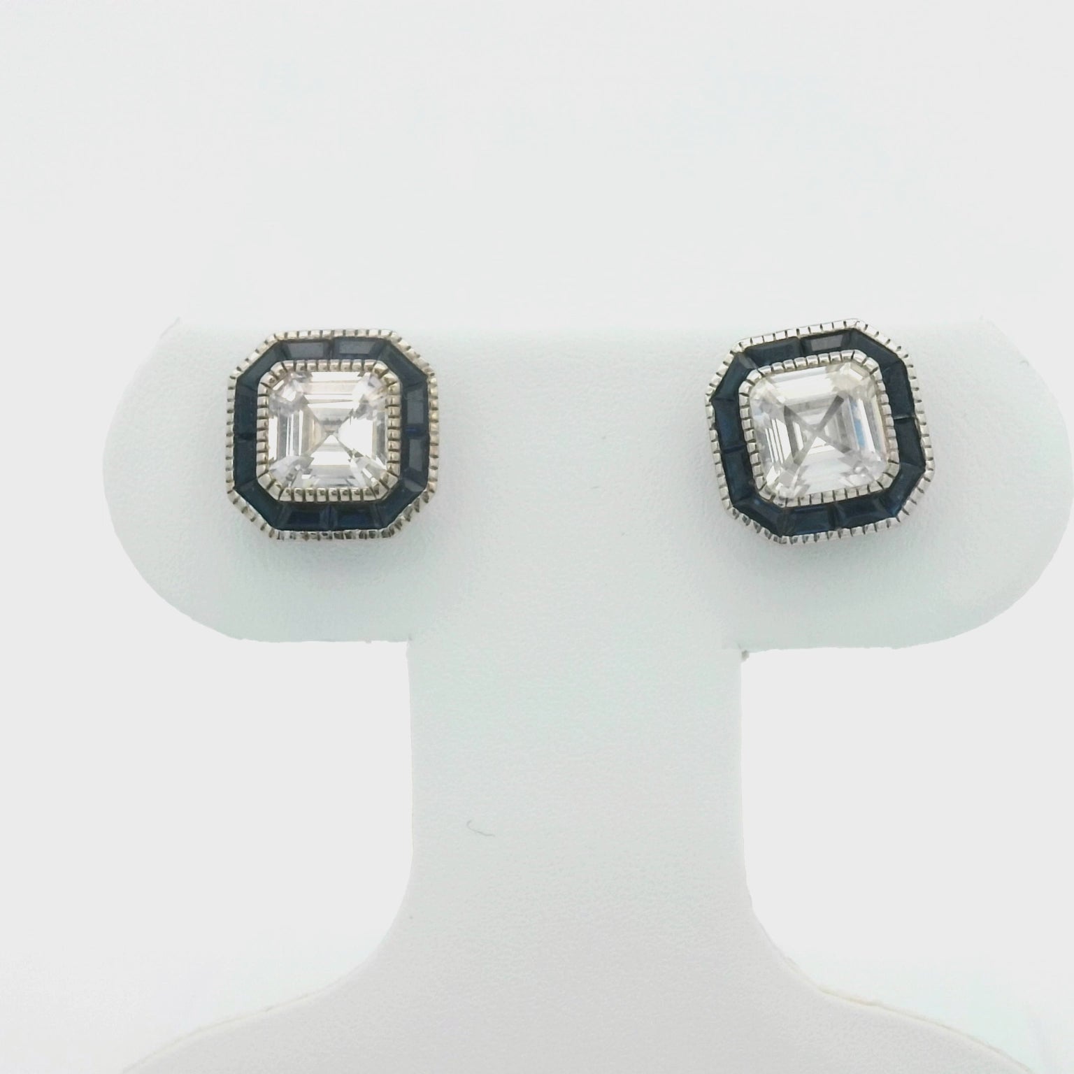 Kelly Herd Asscher Cut/Blue Spinel Earrings are just lovely! The modern asscher cut is similar to an emerald cut, but larger step facets, a higher crown, and a smaller table. This combination produces more brilliance. These earrings feature an asscher cut clear cubic zirconia, surrounded by blue spinel. The intricate designs on sterling silver base add even more depth and dimension to these earrings.