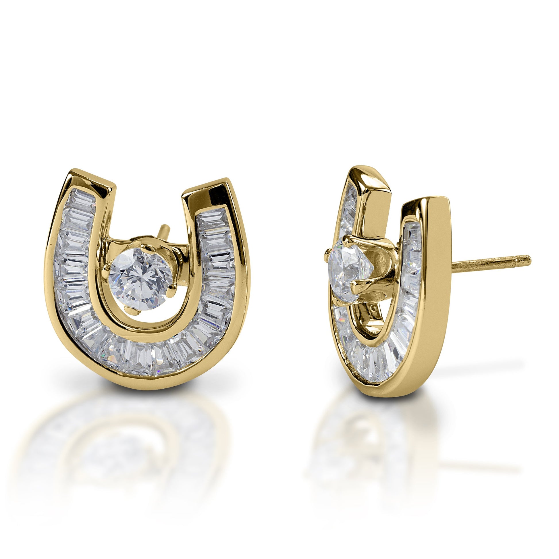 Kelly Herd Baguette Horseshoe Jacket Stud Earrings offer subtle equestrian style with flexibility! These white, or yellow 14k gold earrings feature tapered diamond baguette horseshoe jackets over a .50ct stud earring. Wear them with the jacket for some equestrian bling, or without when you want a simple, classic look.