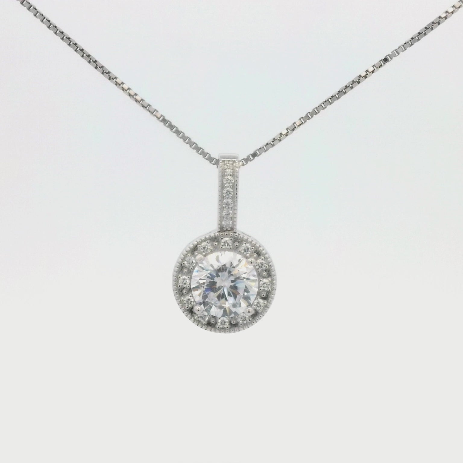 Classic and timeless! The Kelly Herd Bezel Set Necklace features a clear cubic zirconia stone in a round sterling silver bezel set, surrounded by smaller stones. Comes with adjustable 16-18" chain.
