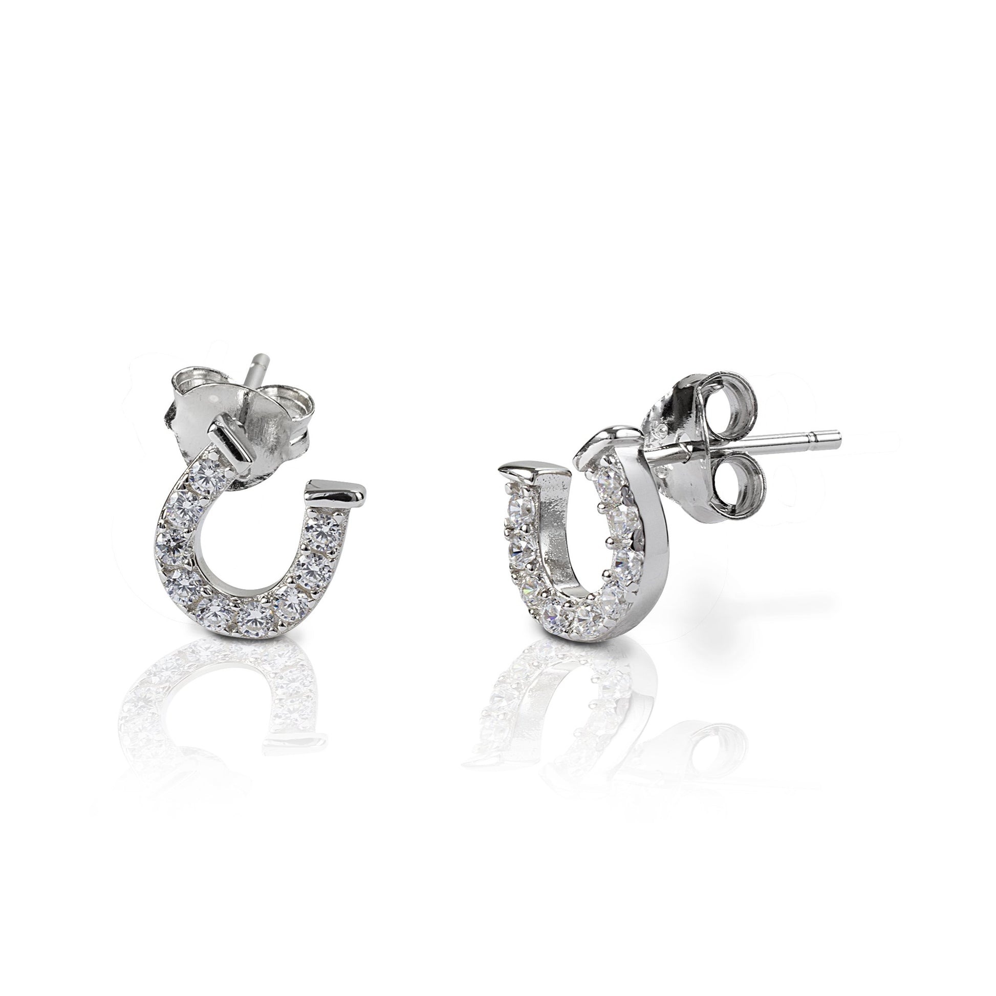 Kelly Herd Clear Horseshoe Earrings are delicate sterling silver horseshoes enhanced with clear CZ stones. Perfect for taking a little luck into the ring with you!
