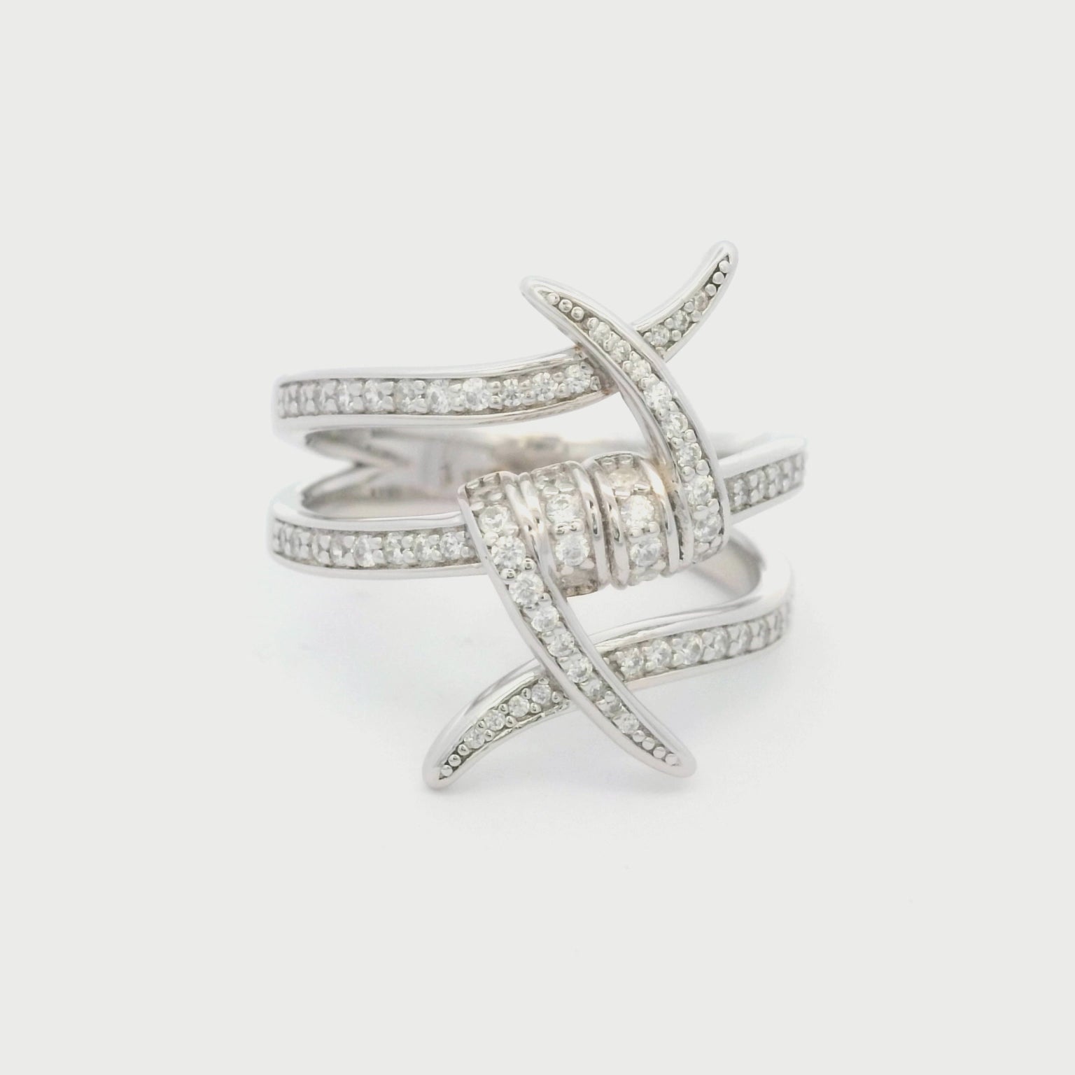 Take a journey back to the days of yore on the American prairie. Our Clear Stone Barbed Wire ring is a true piece of history with real old-world cowboy charm. Made of clear stones and sterling silver this ruggedly handsome piece will bring out the spirit of adventure in the wearer and a strong sense of independence for those taking up life on the frontier.