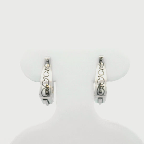 Kelly Herd Engraved Stirrup Earrings are reminiscent of hand tooled leather. Styled like hoops, but in the shape of a Western stirrup, the engravings stand out in black against sterling silver.