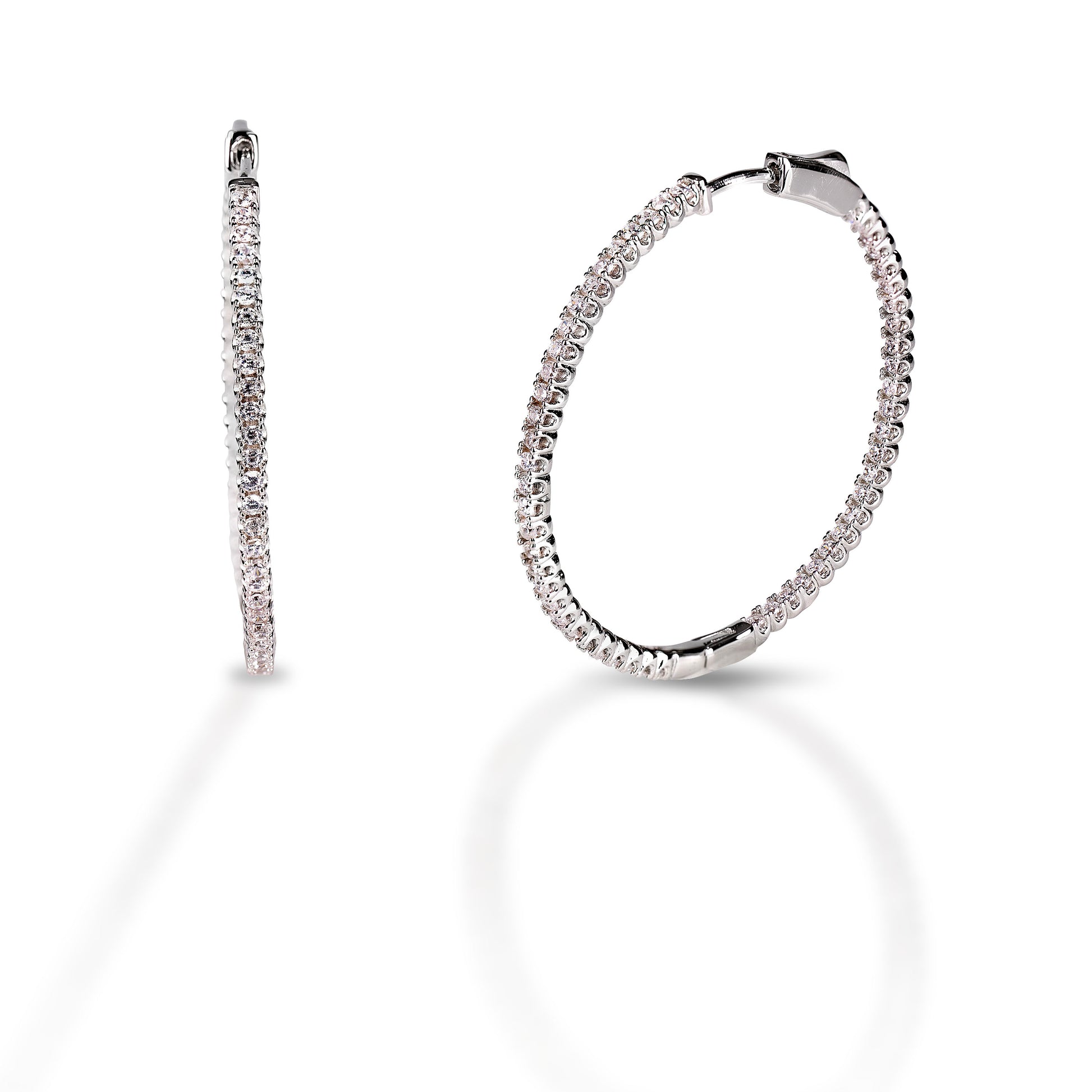 The 40mm diameter of the hoops strikes a perfect balance, making them a versatile choice for both everyday wear and special occasions. The brilliant sparkle of the clear CZ stones captures and reflects light, creating an alluring radiance that effortlessly enhances your natural beauty.