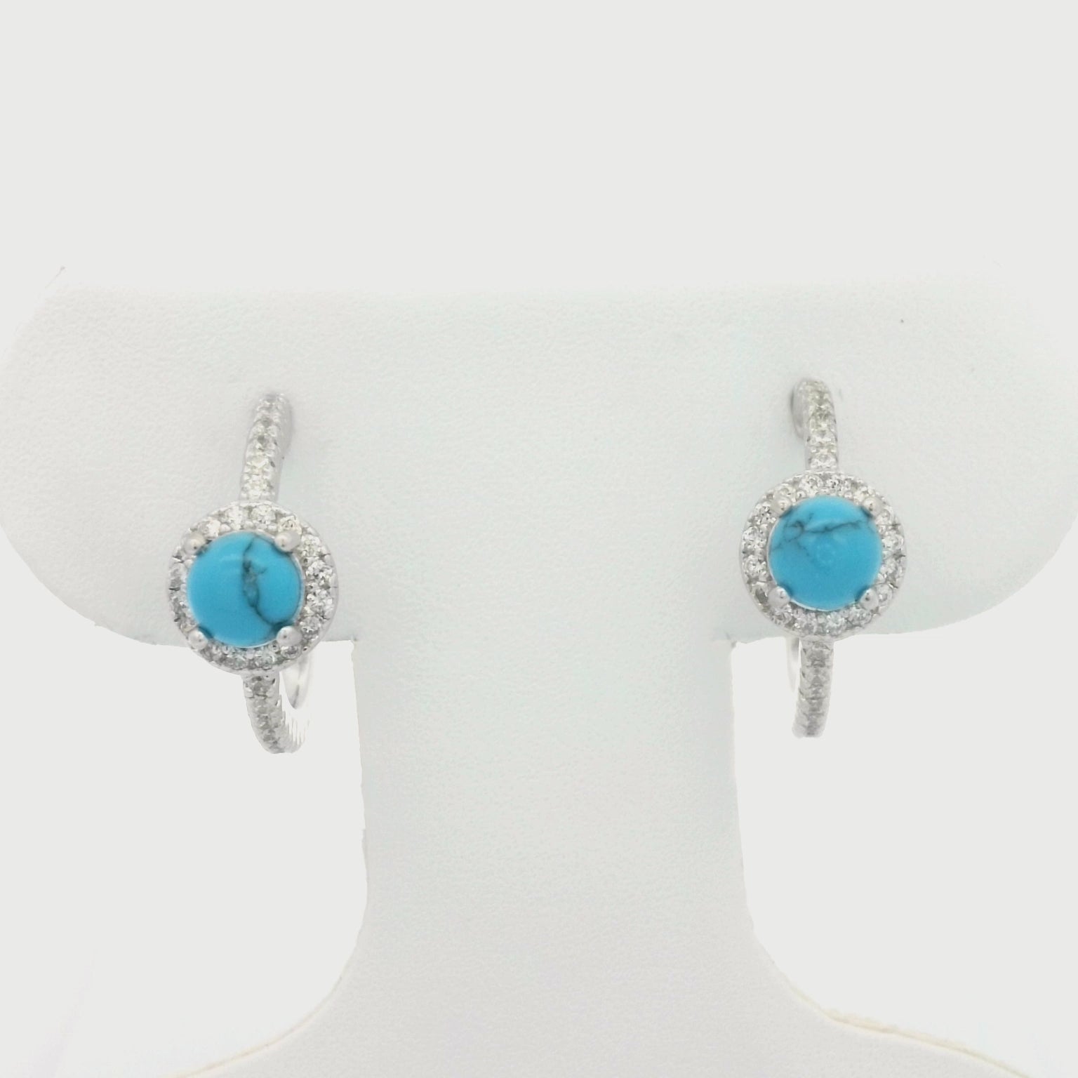 Sterling Silver 925 Semi-Hoop CZ Earrings with CZ and Turquoise StoneÂÂ