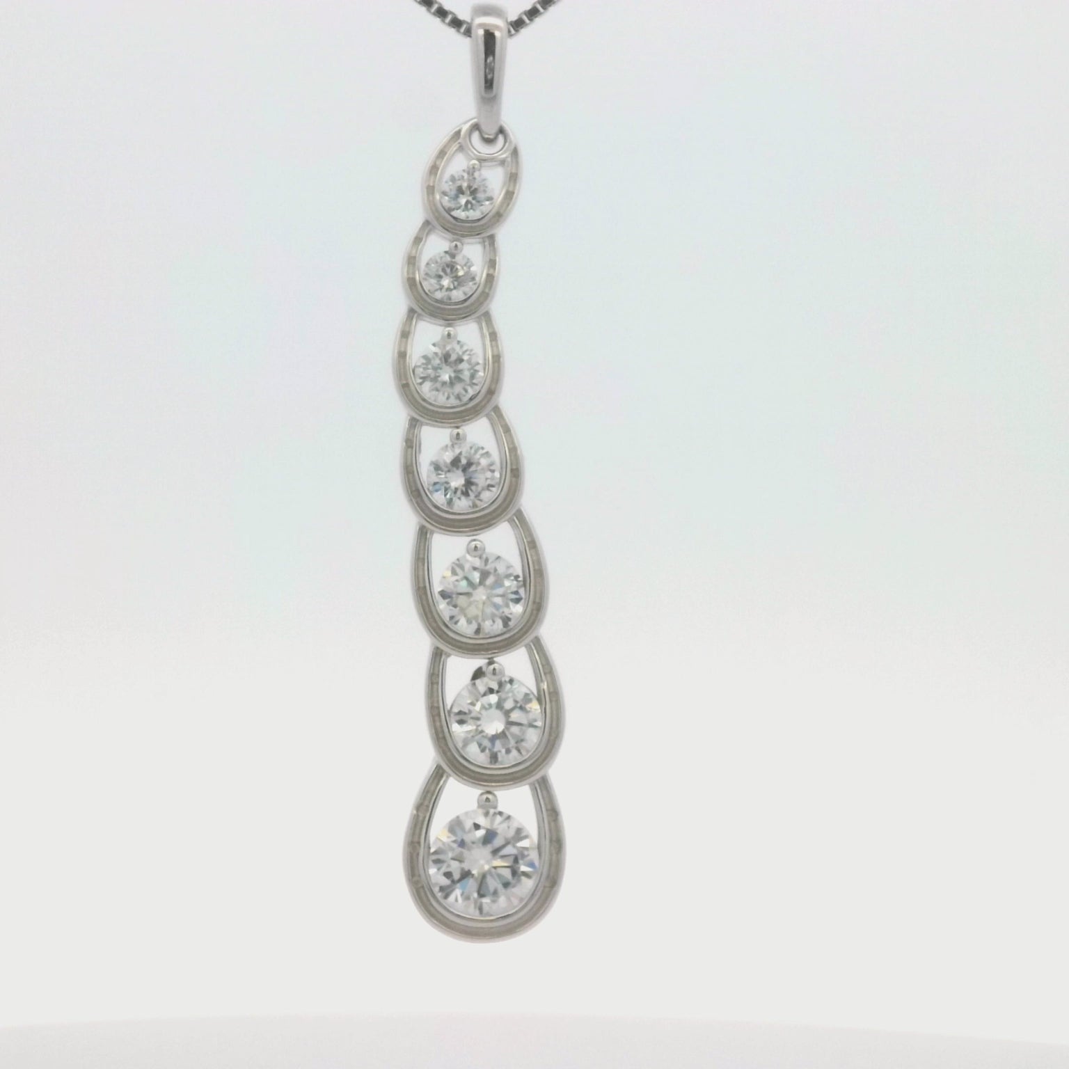 A journey necklace for horse lovers! The Kelly Herd Horseshoe Journey Necklace features a sterling silver "journey" pendant of bezel set graduated size cubic zirconia stones surrounded by horseshoes. The horseshoes are so detailed you can see tiny little nails! Adjustable 16-18" chain.