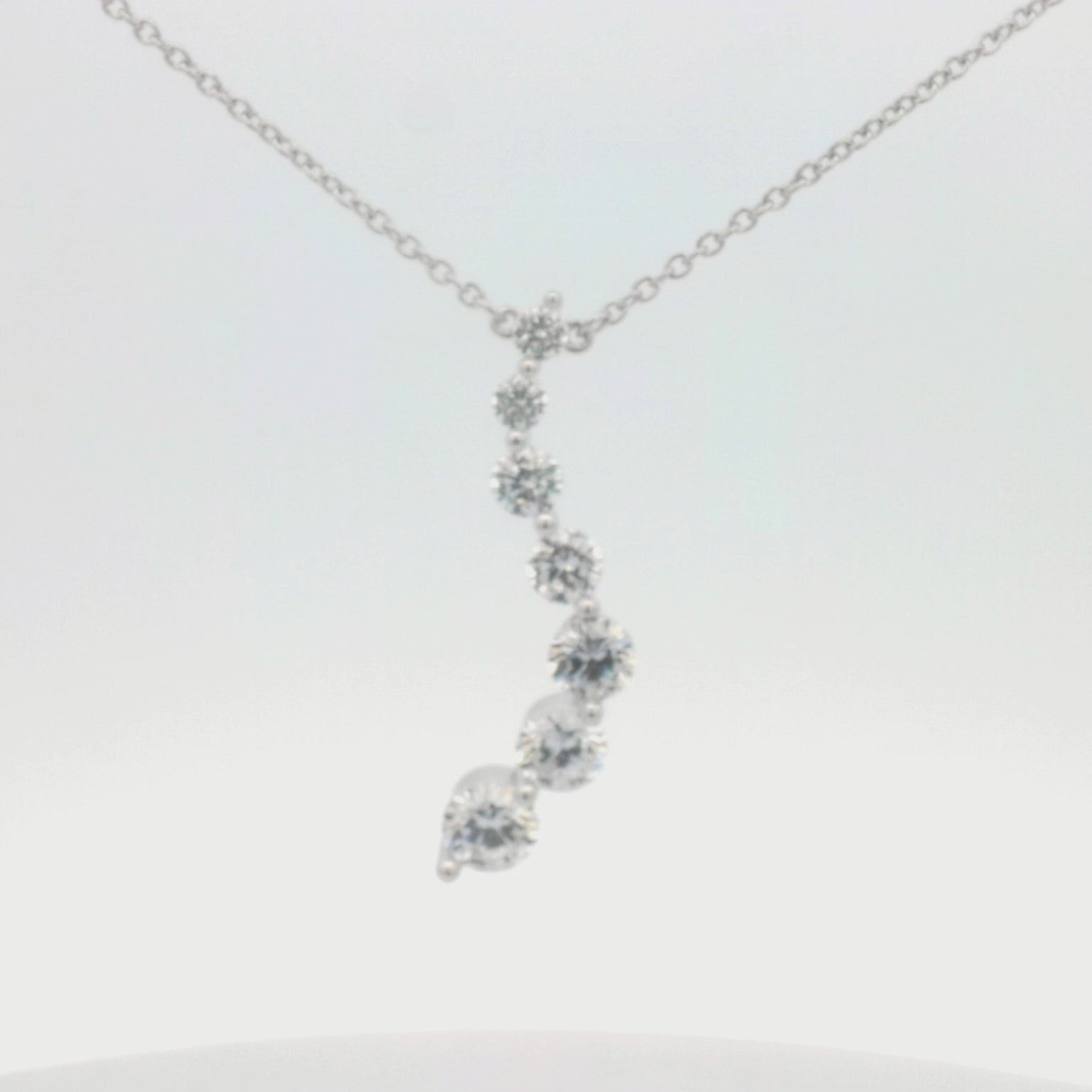 The Kelly Herd Journey Necklace will be your go-to special occasion jewelry! This pendant feature a curved line of graduated sized stones. Sterling silver with clear cubic zirconia stones. This lovely piece would make a perfect anniversary or graduation gift for a special someone!