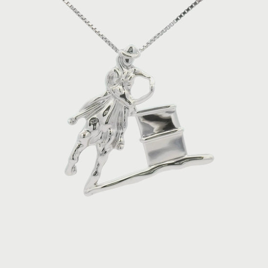 Turn and Burn! Celebrate your sport with the exquisitely detailed Kelly Herd Barrel Racing Pendant. Crafted in sterling silver, this pendant is a perfect tiny barrel horse and rider! Comes with adjustable 16-18" chain.