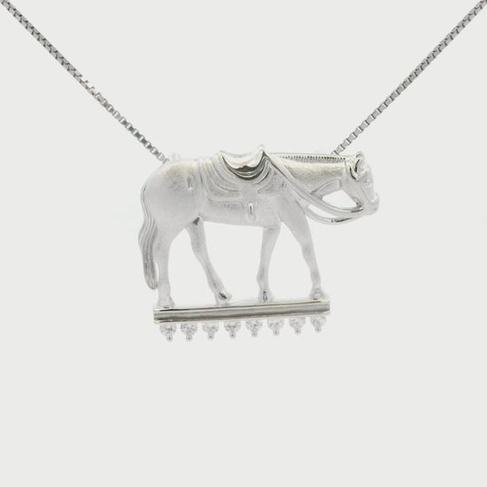 Just for the Western Pleasure rider, Kelly Herd's Pleasure Horse Necklace is beautifully crafted in sterling silver, and enhanced with clear cubic zirconia stones. Comes with adjustable 16-18" chain.
