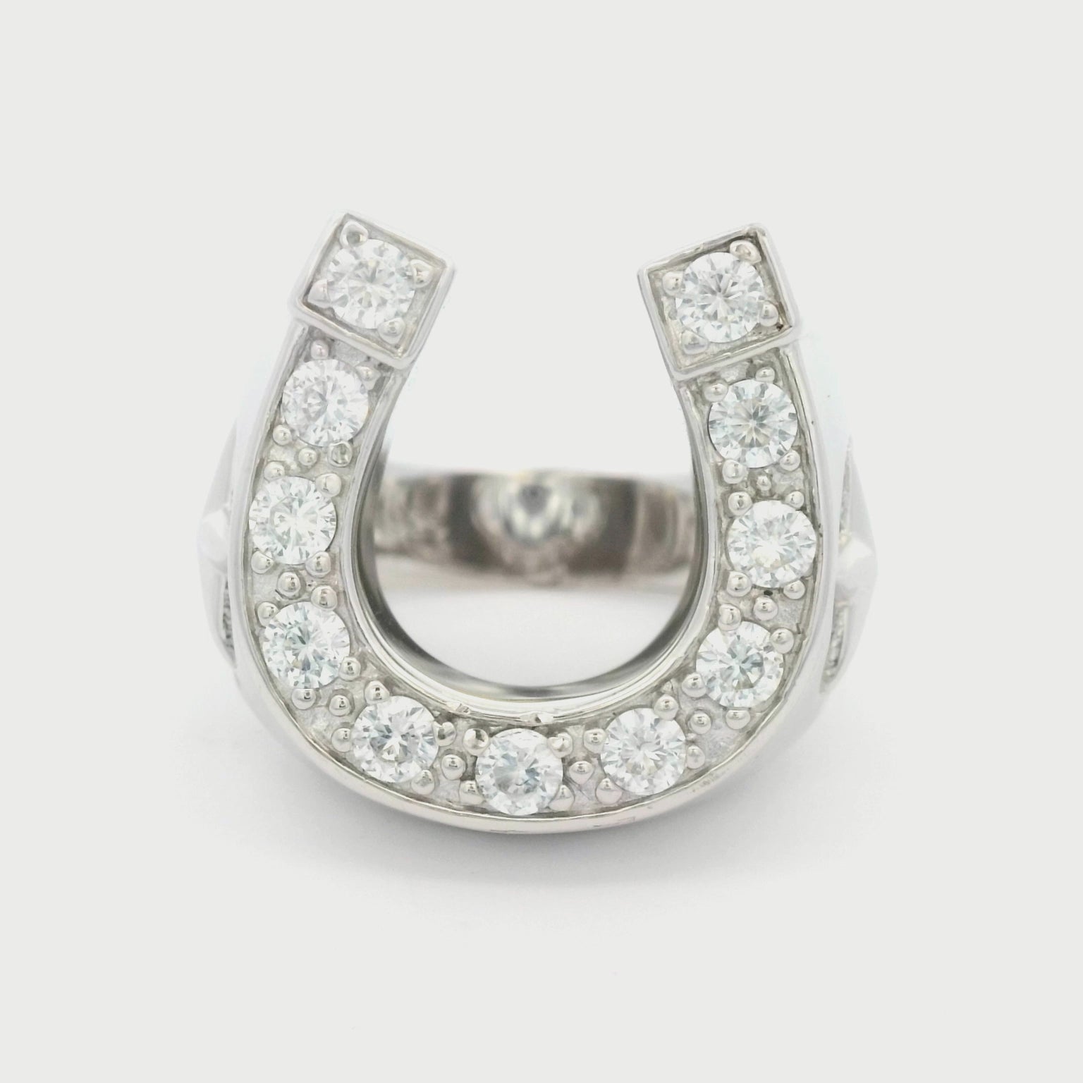 Every man needs a little luck! The Kelly Herd Engraved Stars Horseshoe Ring is strong and masculine, just like your guy. Made of sterling silver, this ring features a smooth surface, a CZ enhanced horseshoe, and engraved five pointed stars on the side.