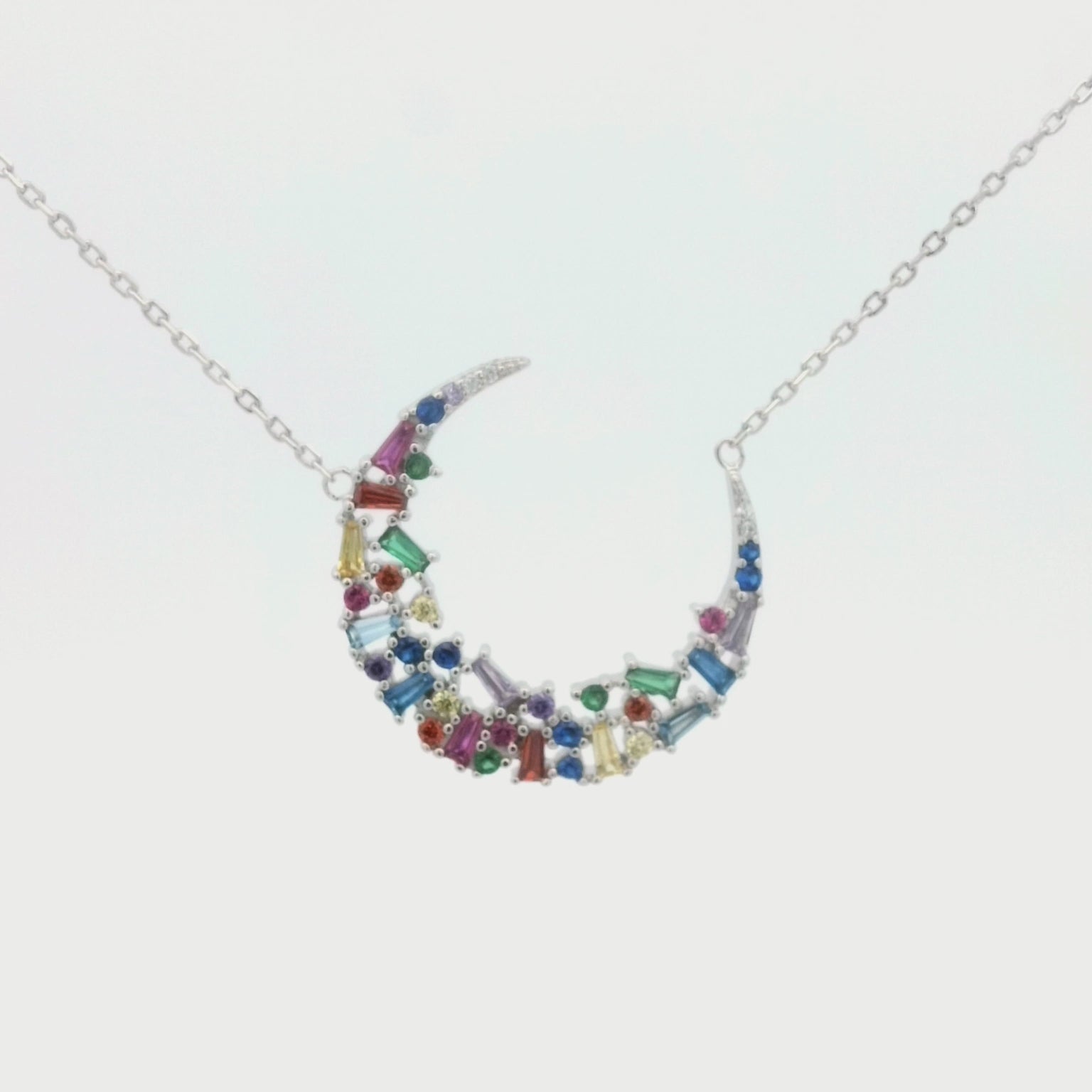 Kelly Herd Multi-Color Crescent Necklace - Sterling Silver