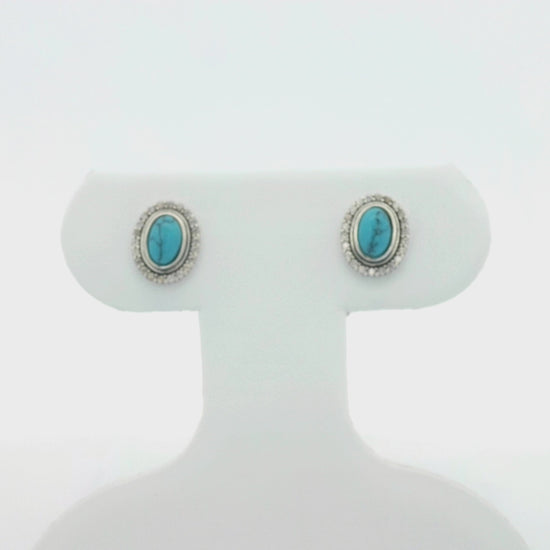 The Kelly Herd Oval Turquoise Earrings evoke a classic cowgirl look. The timeless oval shape will take you from a morning on the ranch to the finest evening gala! The turquoise details of the ovals are accented with brilliantly sparkling cubic zirconia stones. These pair perfectly with the Kelly Herd Oval Turquoise Pendant Necklace.ÂÂ
