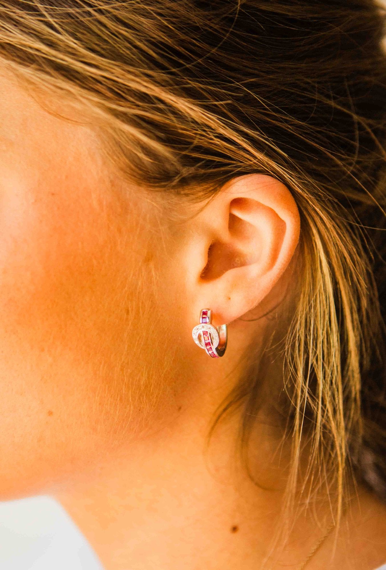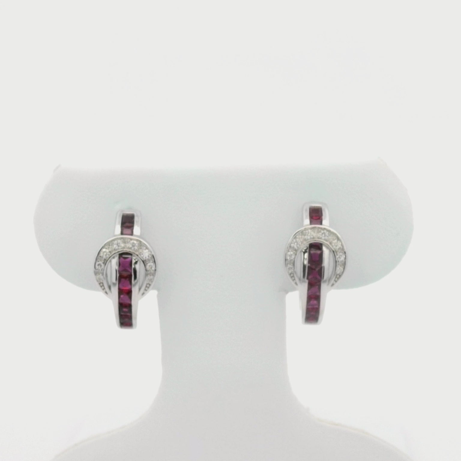 A fun take on classic hoop earrings! Kelly Herd Contemporary Buckle Earrings take the form of a simple show belt. Made of sterling silver, the "belt" is set with square pavé CZ, and the "buckle" has round red stones.