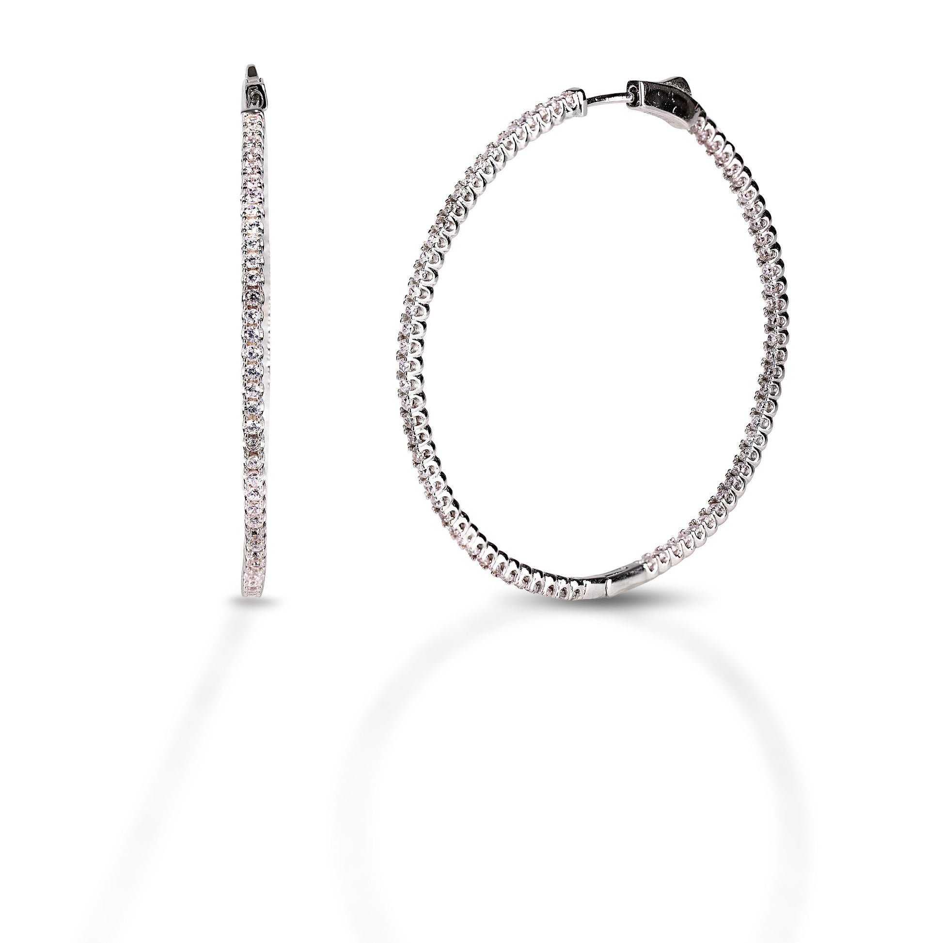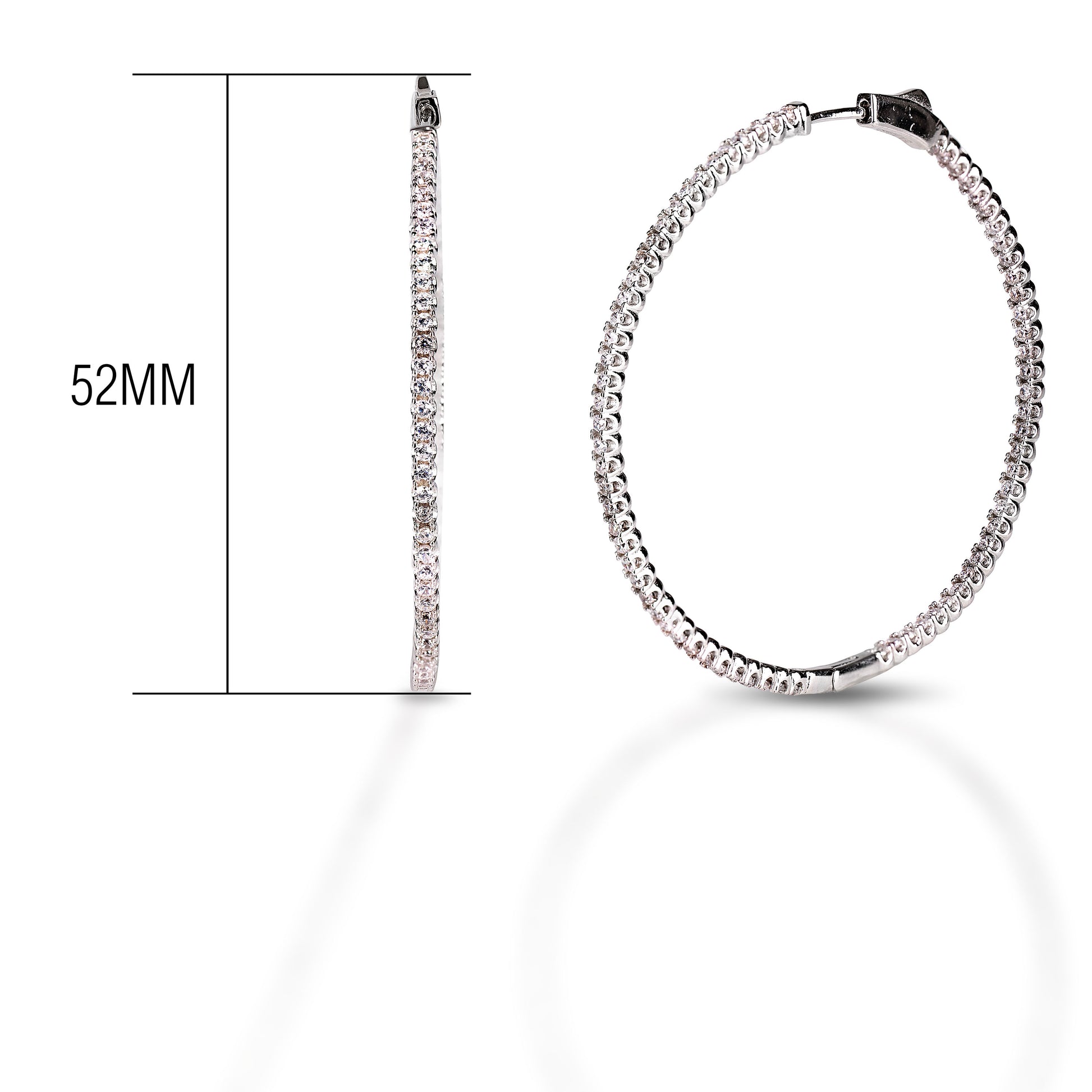 The impressive 50mm diameter of the hoops creates a bold statement, while the eternity-style setting showcases a continuous circle of clear cubic zirconia stones. The brilliance of the CZ stones captures the essence of eternal glamour, making these earrings a perfect accessory for both special occasions and everyday chic.