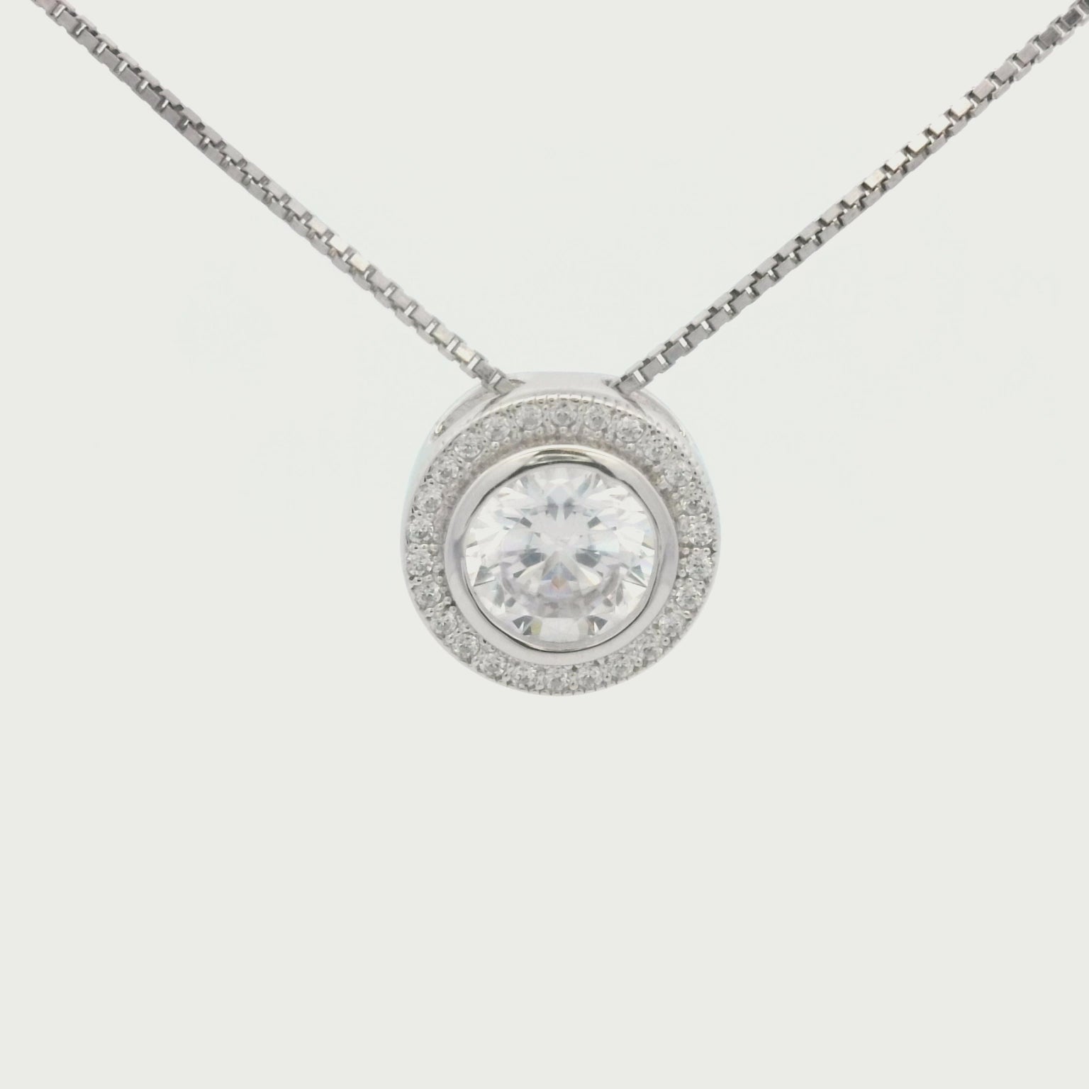 Kelly Herd Round Bezel Set Pave Necklace - Sterling Silver
