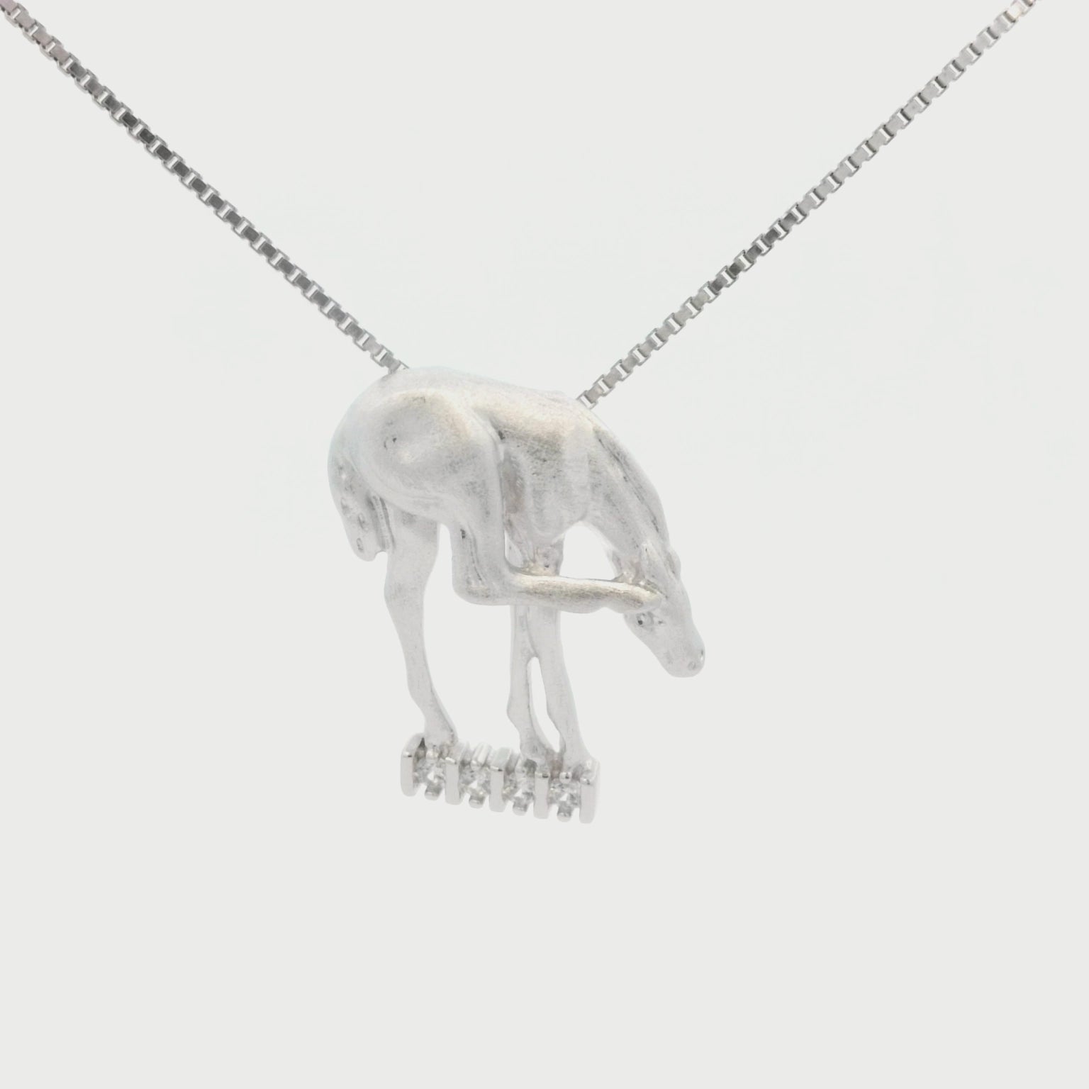 Impossibly long legs and endless curiosity - Kelly Herd's Scratching Foal Pendant captures the look and spirit of equine babies. Crafted in sterling silver, and enhanced with clear CZ stones. Comes with 16-18" adjustable chain.