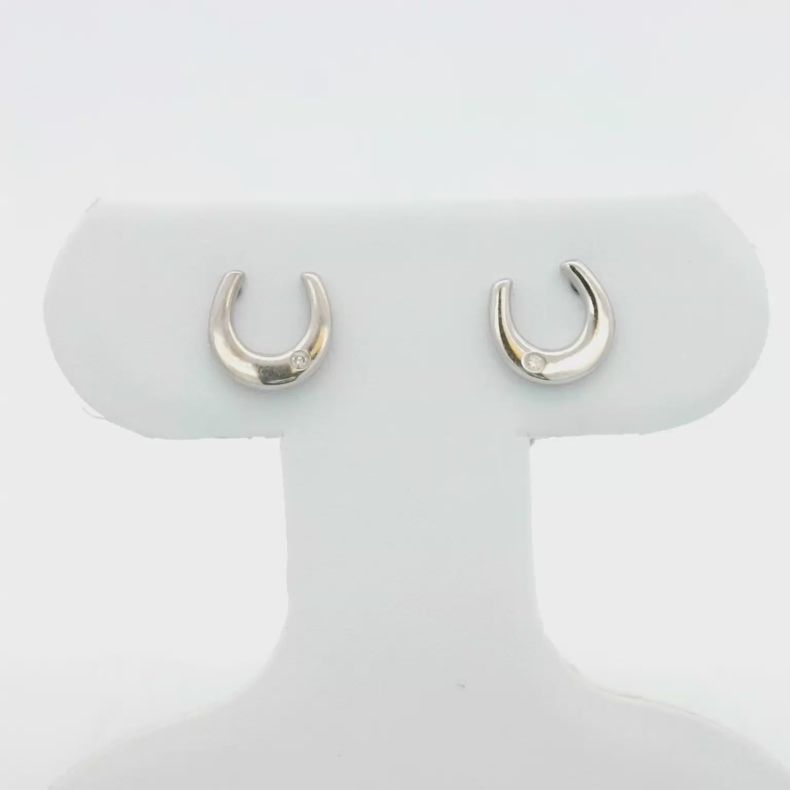 Modern and clean, the Kelly Herd Single Stone Horseshoe Earrings feature stylized sterling silver horseshoes with a small off set diamond.