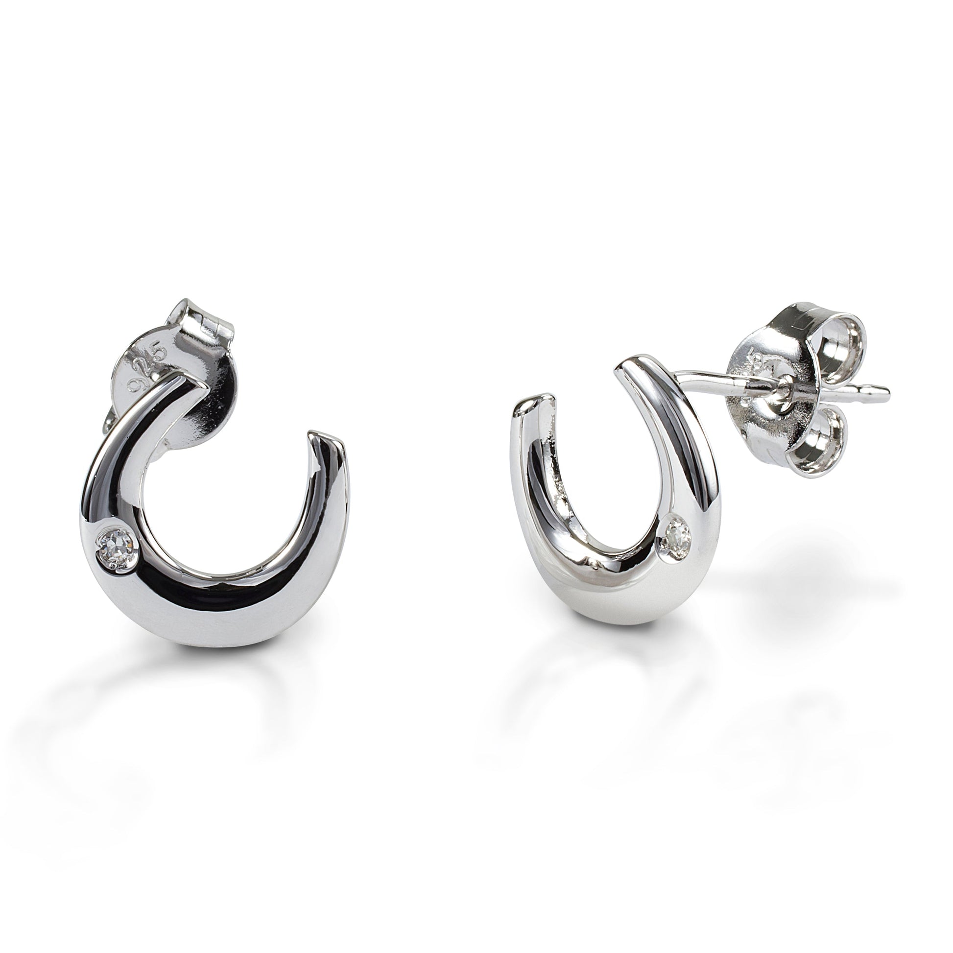 KELLY HERD SINGLE STONE HORSESHOE EARRINGS - STERLING SILVER
