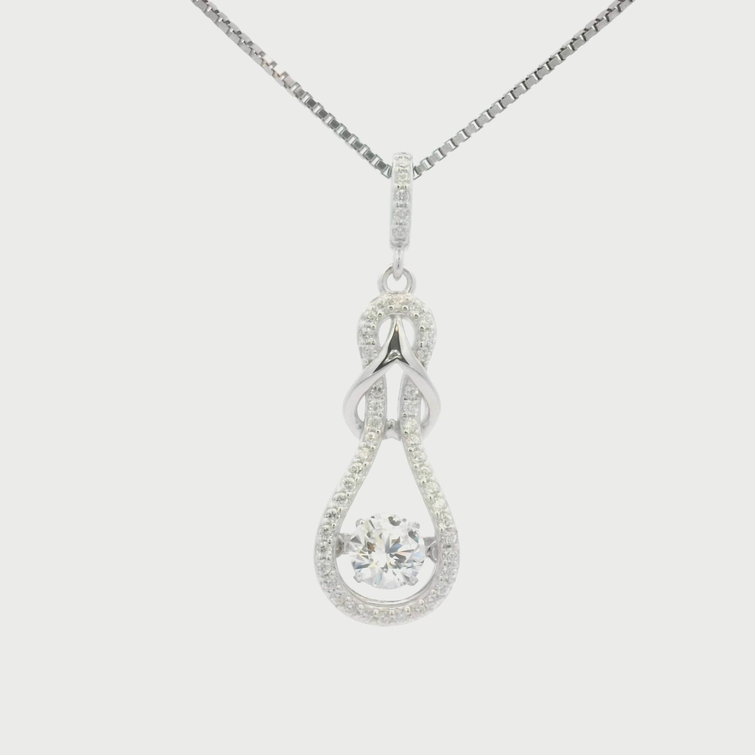 Kelly Herd's Slip Knot Necklace is just gorgeous! This intricately designed sterling silver pendant has smooth and stone enhanced curves creating a lovely knot effect. With a single clear cubic zirconia stone in the center, this pendant earrings will really catch the light. Matching earrings are available.