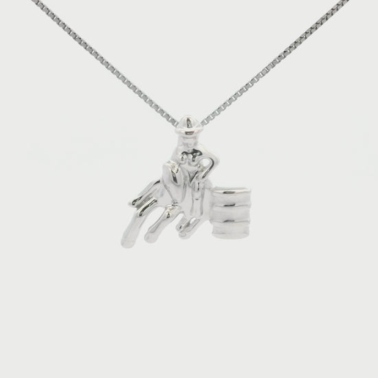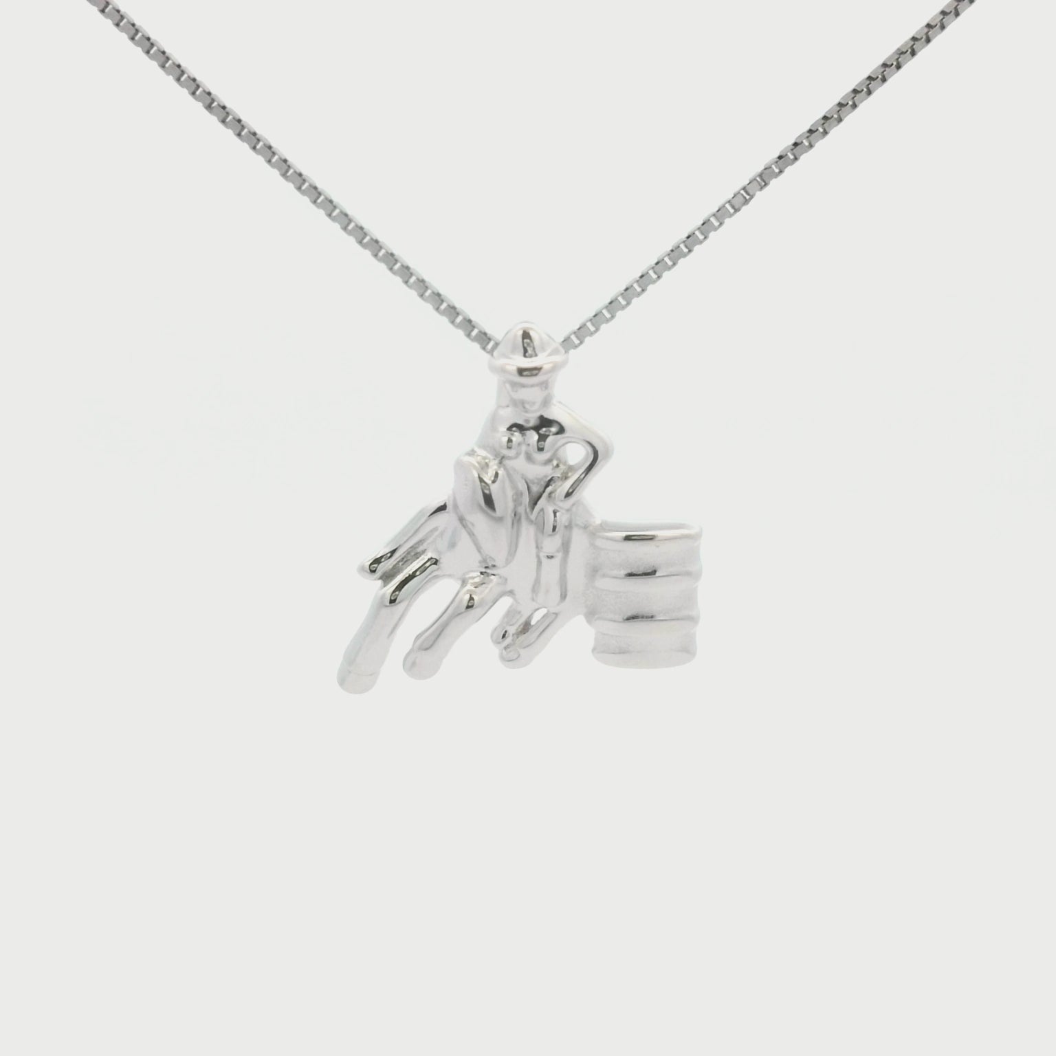 Turn and Burn! Celebrate your sport with the exquisitely detailed Kelly Herd Barrel Racing Pendant. Crafted in sterling silver, this pendant is a perfect tiny barrel horse and rider! Comes with adjustable 16-18" chain.