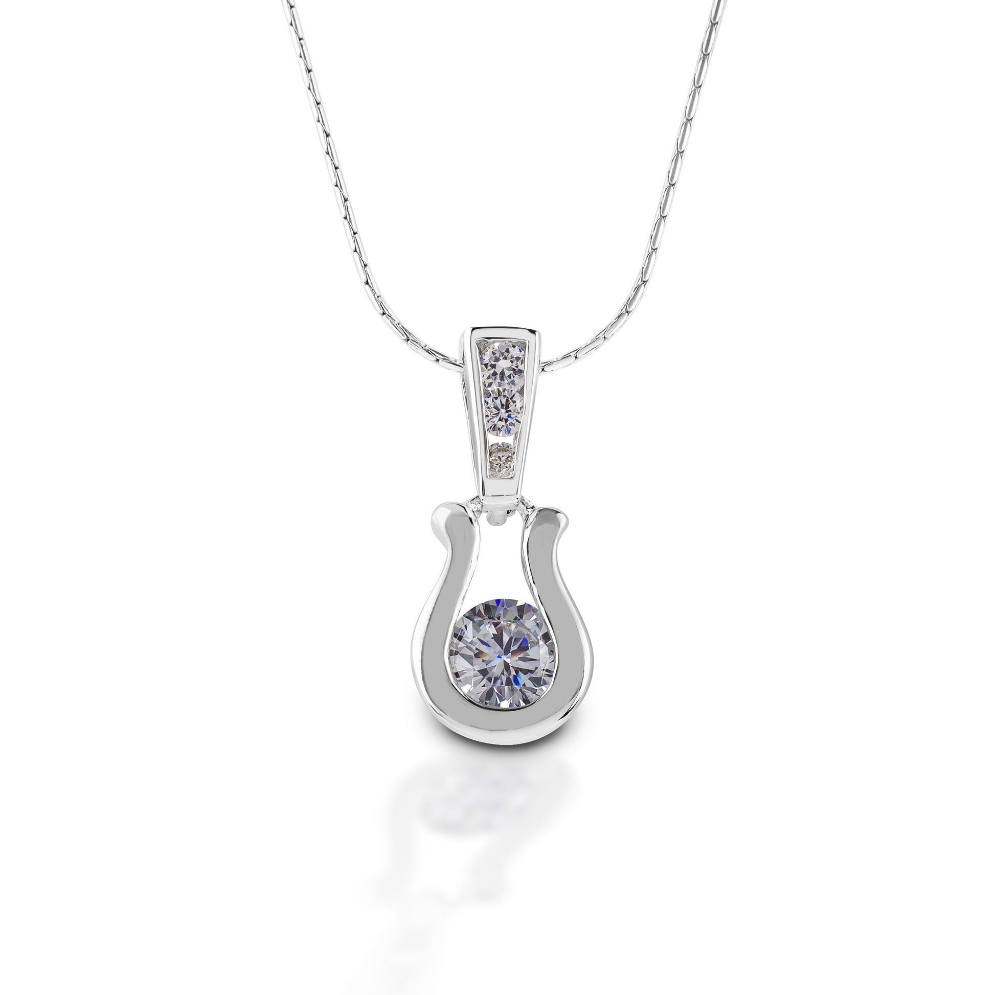 Are they horseshoes? Or perhaps Western stirrups? Or maybe just elegant scrolls. It really doesn't matter because the Kelly Herd Stylized Horseshoe Necklace is gorgeous! Made of smooth finish sterling silver, with clear cubic zirconia accents on top, and a single stone on the dangle, this lovely pendant will go with anything.