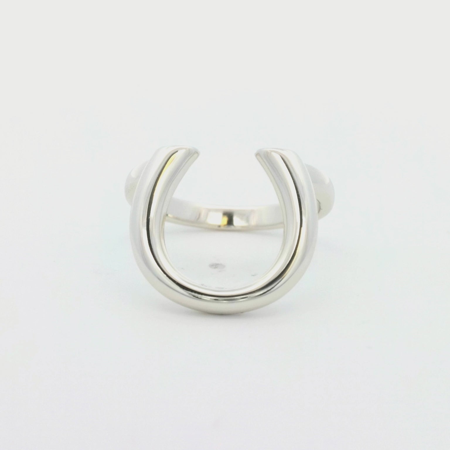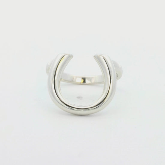 Embrace bold style and timeless design with this large silver-plated horseshoe ring. Featuring a sleek and modern interpretation of the classic horseshoe motif, this adjustable open-ring design offers both comfort and versatility. Its polished silver finish adds a touch of sophistication, making it a standout piece for everyday wear or special occasions.